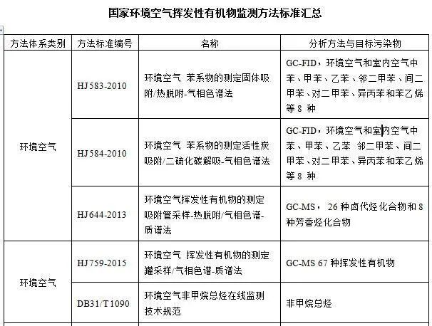 我國在揮發(fā)性有機物監(jiān)測方面也出臺了一系列監(jiān)測標準。各地針對固定污染源揮發(fā)行有機物連續(xù)監(jiān)測相繼出臺了技術(shù)規(guī)范。(如圖:)